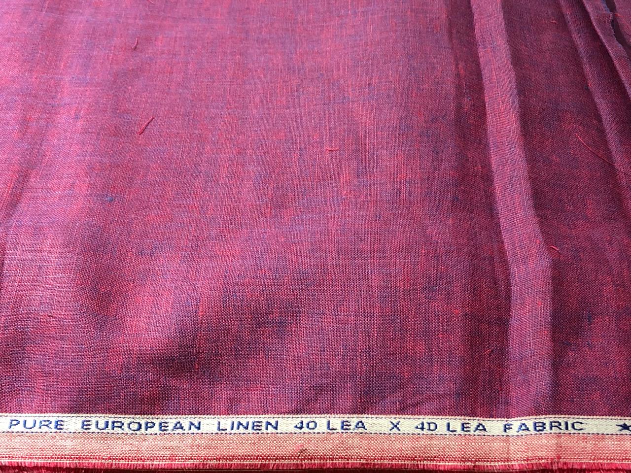 100% linen 40 LEA 58" wide available in 7 colors BRICK RED/INK BLUE/MOSS GREEN/BROWN/BLACK/PINKISH REDXBLUE/SAND/DARK MUSTARD AND HUNTER GREEN