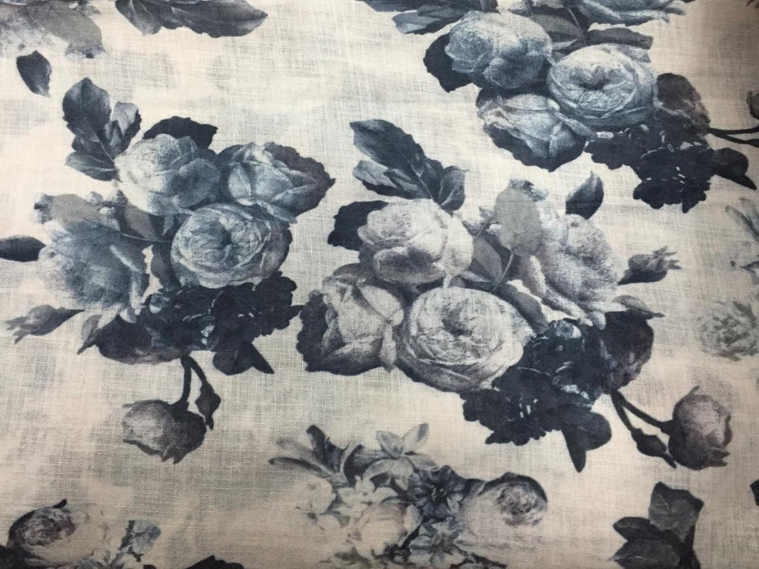 100% linen Beautiful Black Grey and White floral Print Fabric 58" wide [11670]