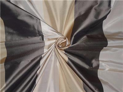 100% Pure Silk Taffeta Fabric Gold,Caremel,Charcoal Stripes 54" wide TAF