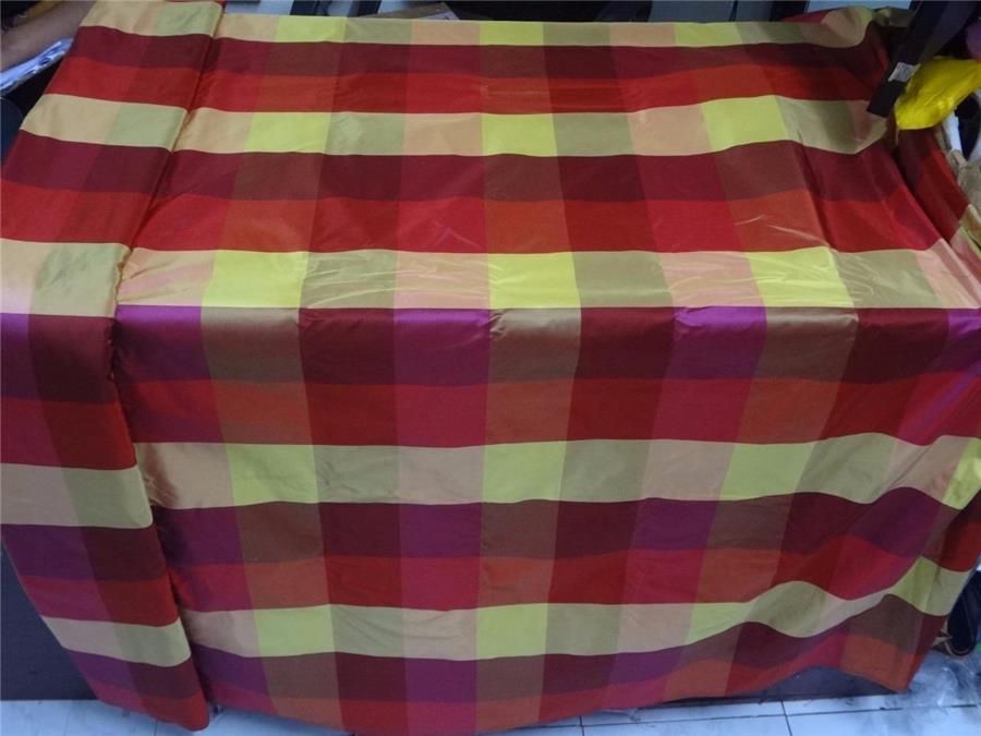 100% PURE SILK TAFFETA FABRIC MULTI COLOR PLAIDS 54"wide Taf