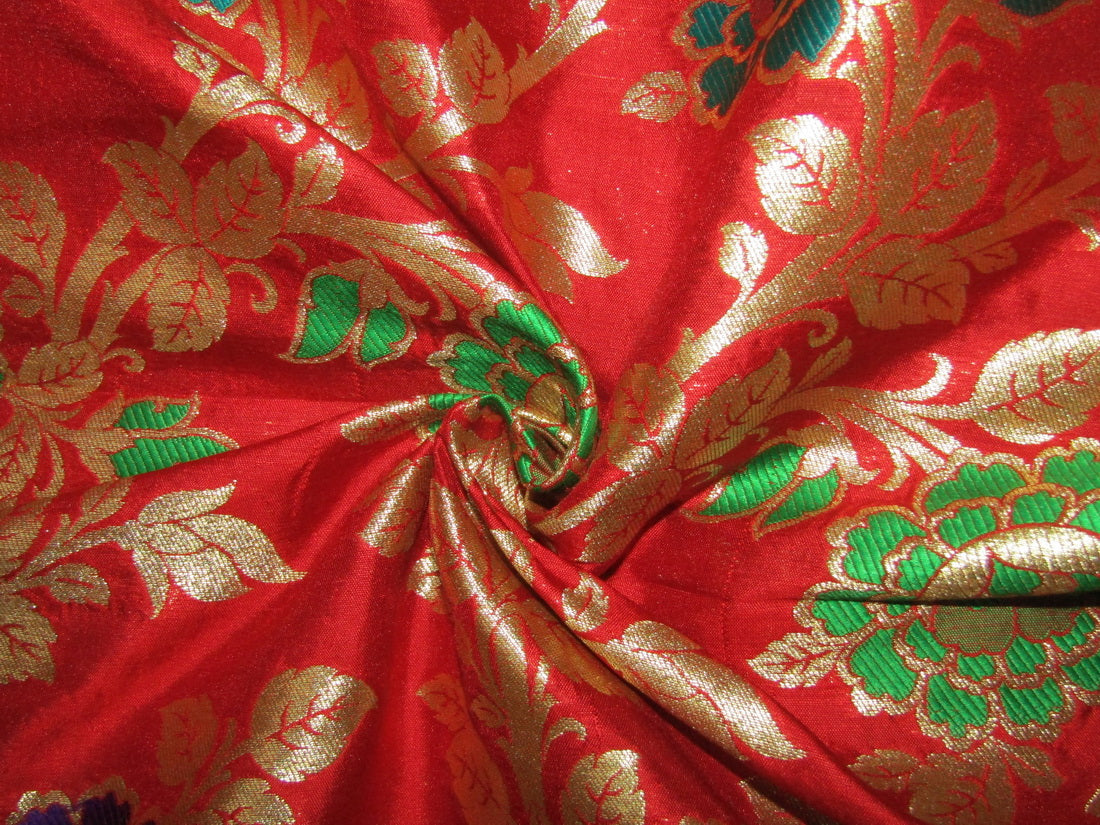 100% silk Brocade fabric red/purple/green/blue x metallic gold 44"wide BRO656[1]