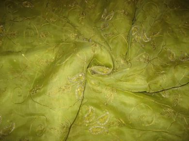 100%silk organza fabric Kiwi Green Colour beadwork 44" wide [1017]
