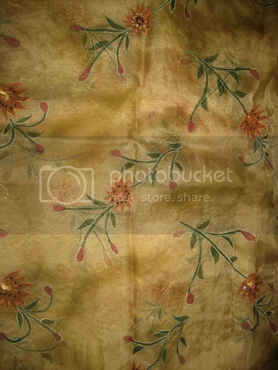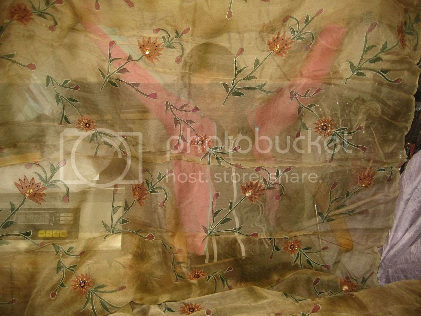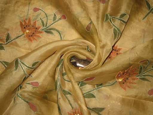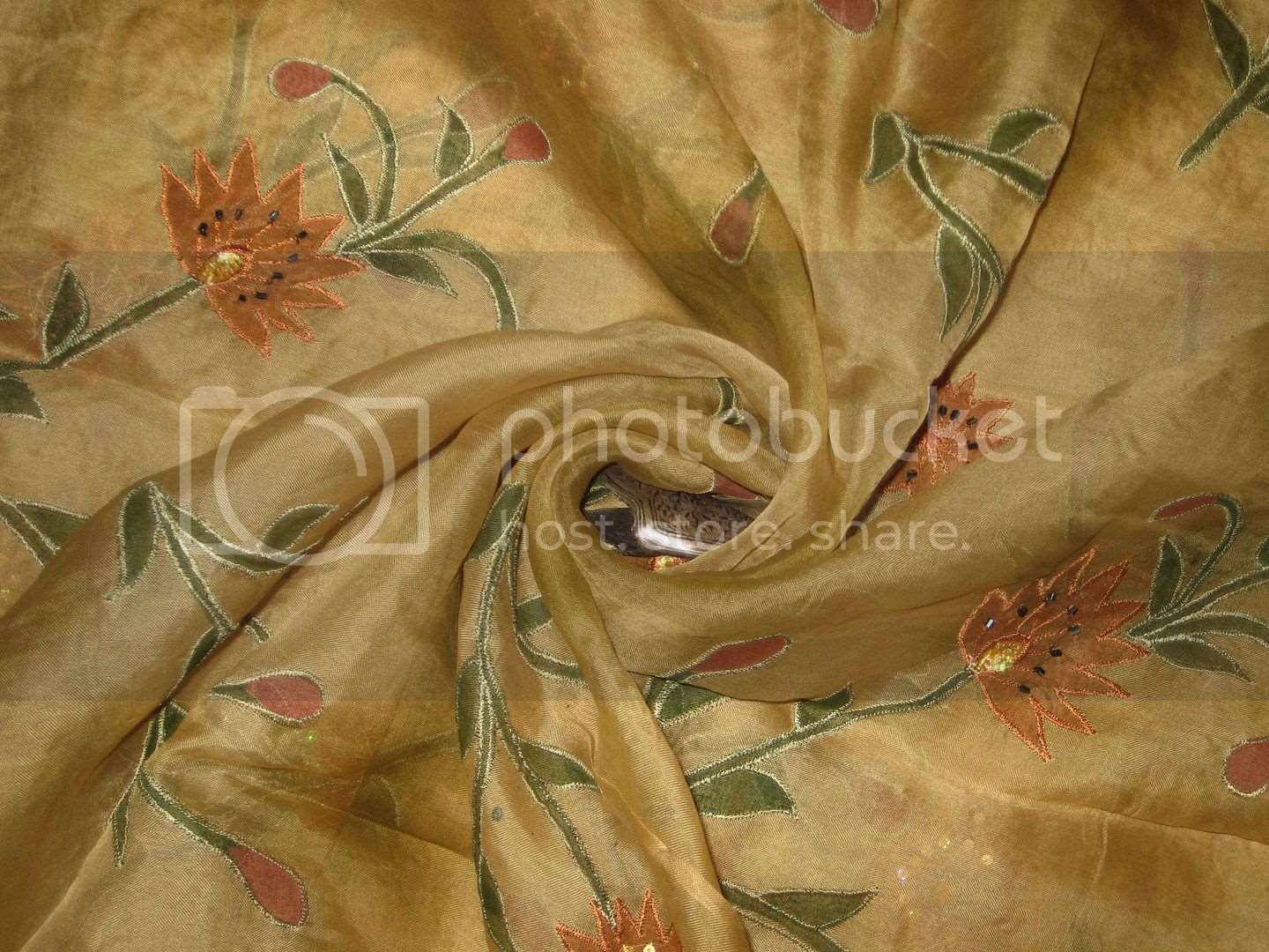 100 % SILK ORGANZA FABRIC Light Gold COLOUR embroidered 44" wide