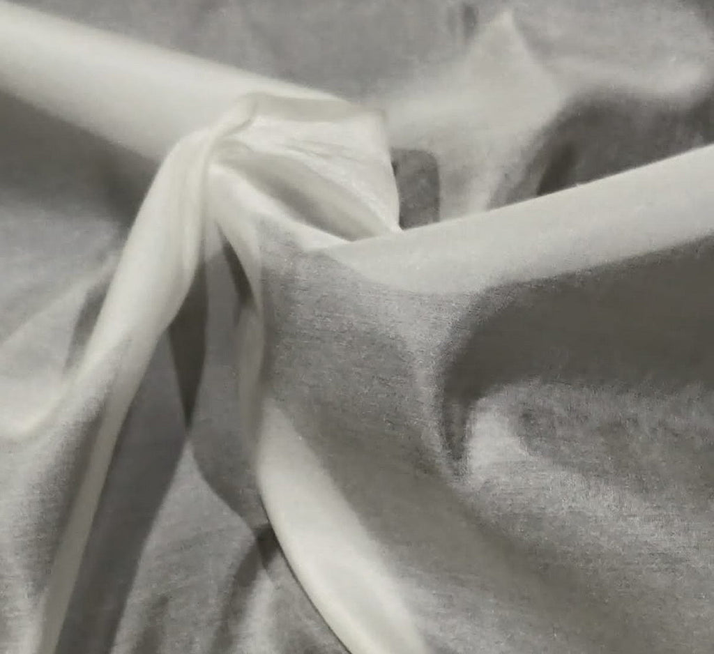 A very sheer, crisp fabric that is strong and durable with a firm hand and a flat, smooth texture. The open weave is naturally stiff without the addition of any "stiffeners", so great for specific use in wedding garments, petticoats, costuming, lampshade work, interfacing, etc. Readily accepts and reflects strong, brilliant colors.