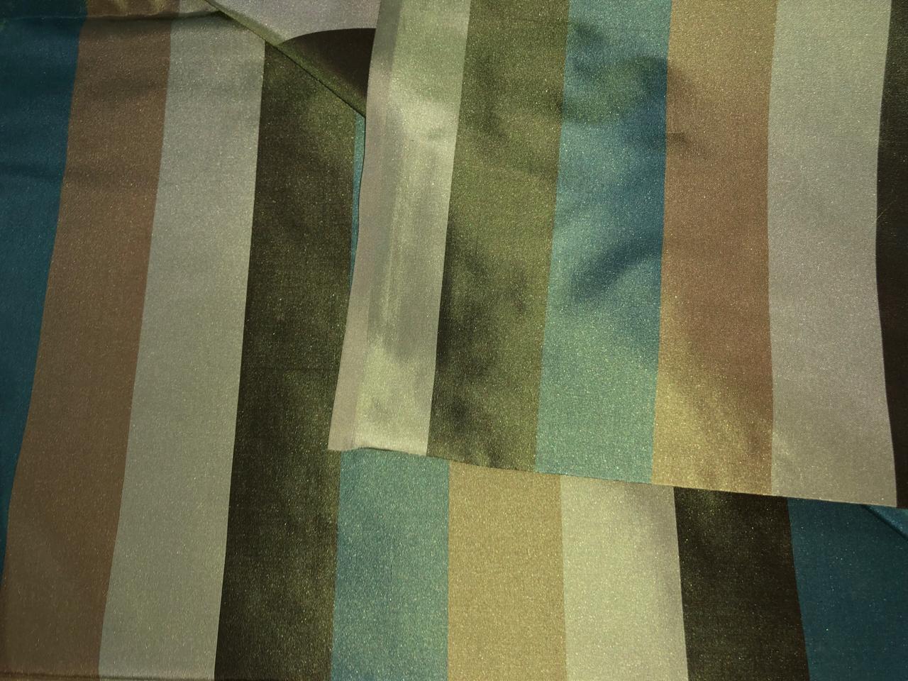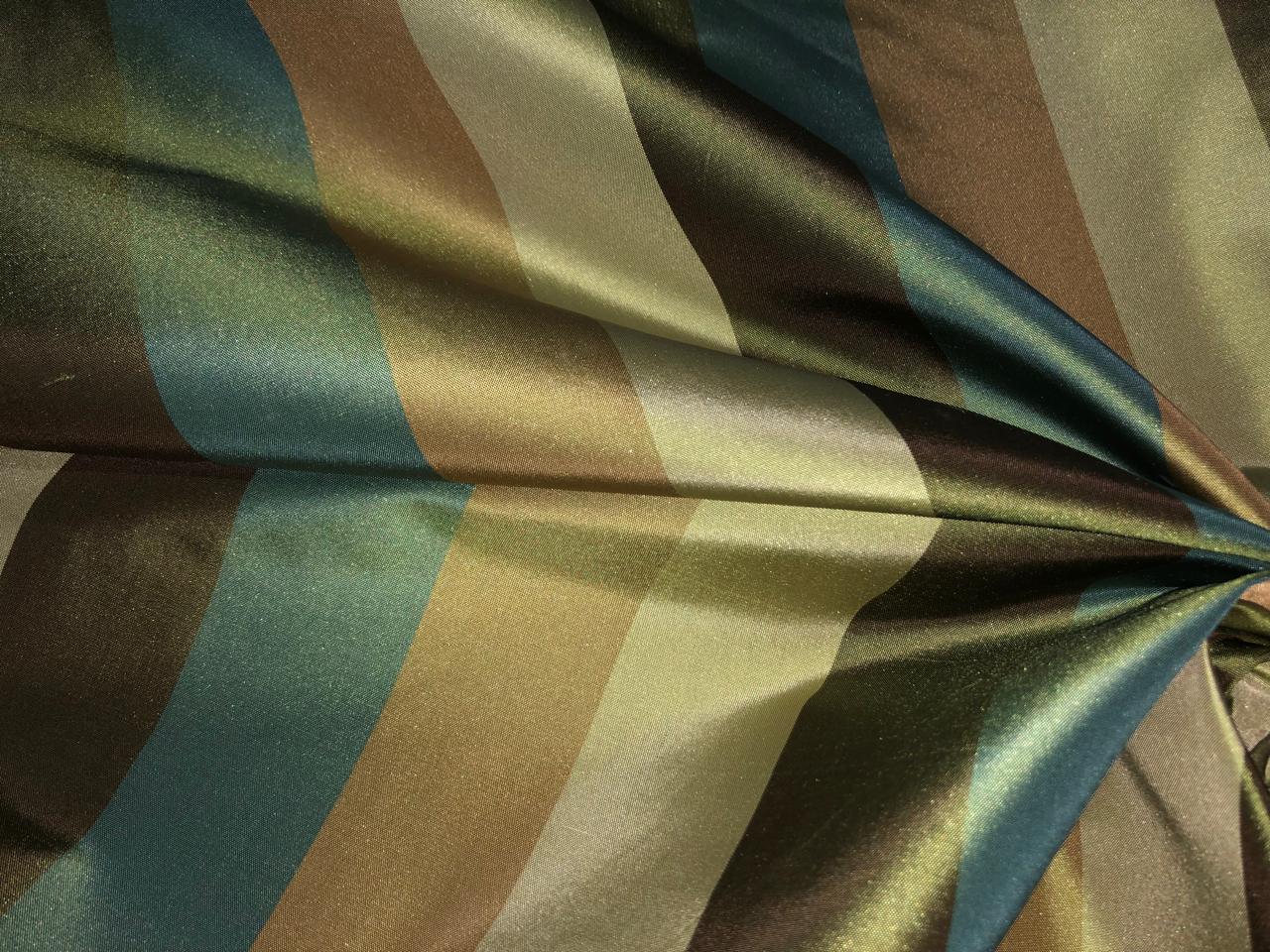100% Silk Taffeta Fabric gold, brown, light olive, dark olive and slate blue Stripes 54" WIDE TAFS163[4]