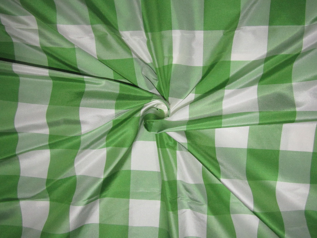 100% Silk Taffeta Fabric green and white plaids TAFC65[1] 54" wide