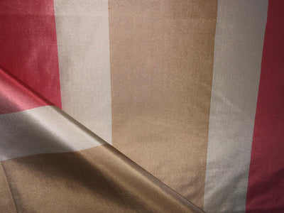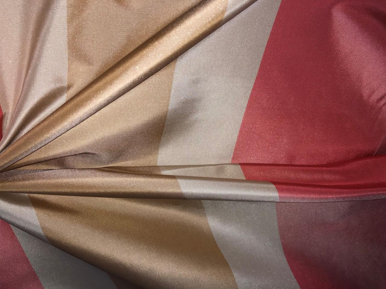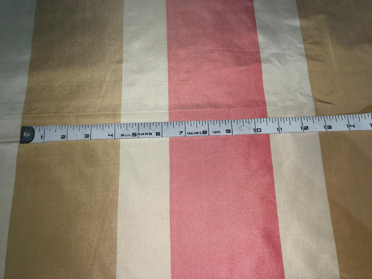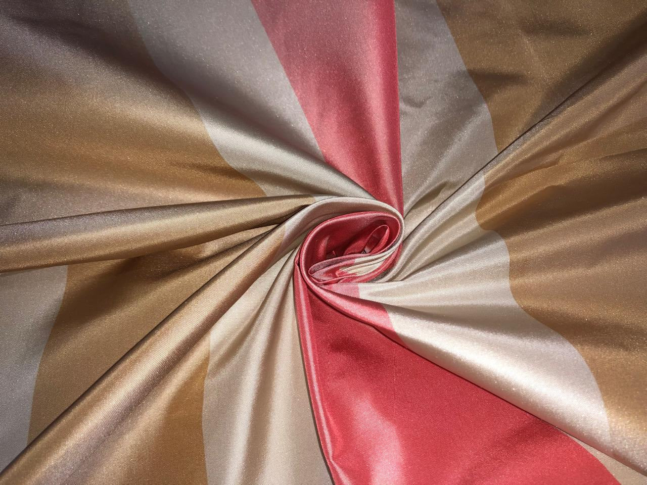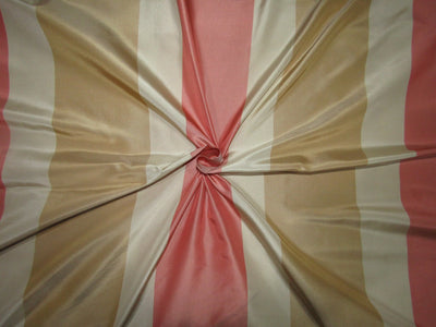 100% SILK TAFFETA fabric stripes beige gold ,Caramel gold AND salmon pink , TAFS163[5] 54" wide
