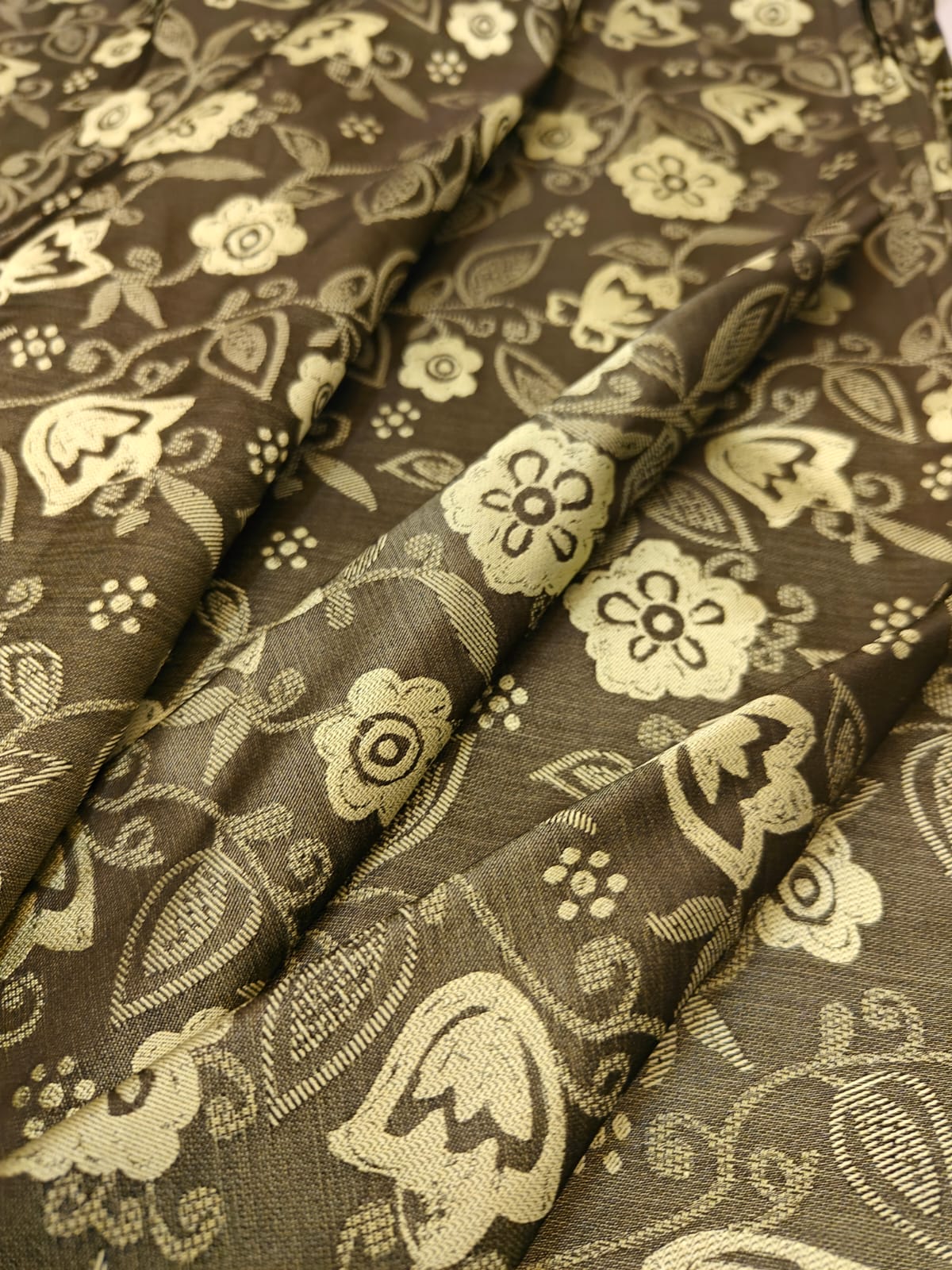 Taffeta is a crisp, smooth, plain woven fabric made from silk .The word is Persian in origin and means "twisted woven". It is considered to be a "high-end" fabric, suitable for use in ball gowns, wedding dresses, and in interior decoration for curtains or wallcoverings. It is also widely used in the manufacture of corsets and corsetry: it yields a more starched-like type of cloth that holds its shape better than many other fabrics.