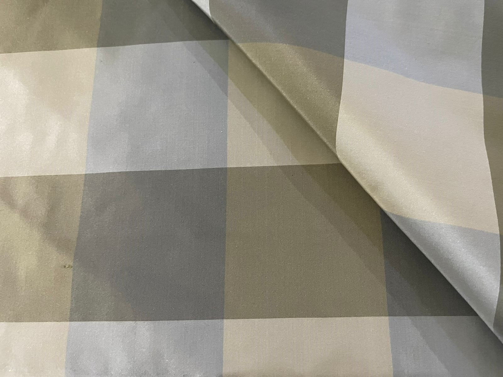 100% Silk Taffeta Green gold and Greys plaid 54" wide TAF