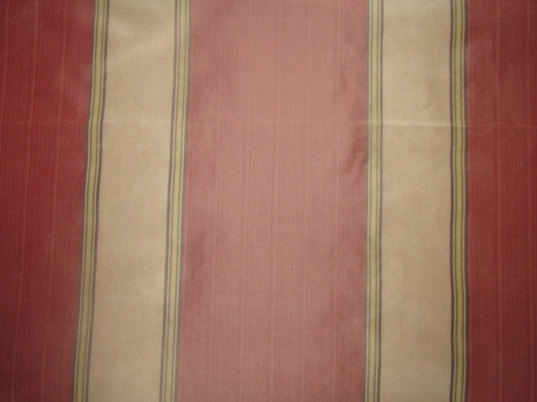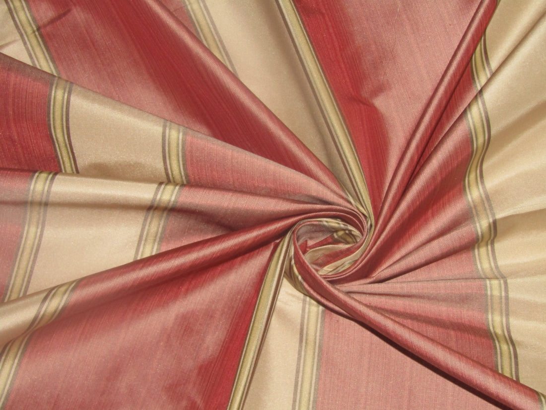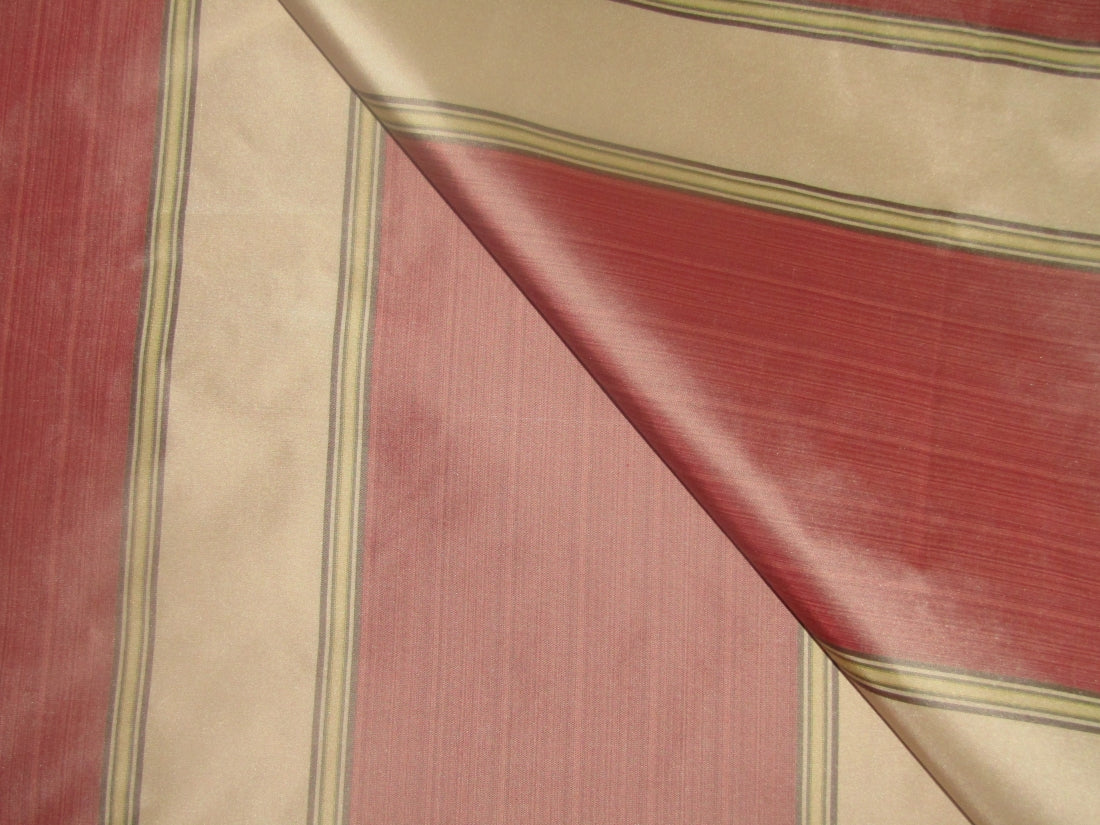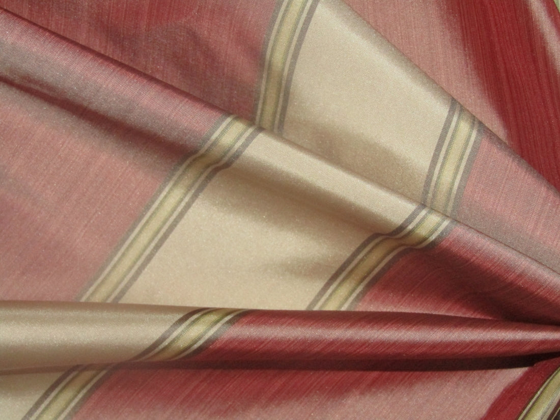 100% Silk Taffeta shades of Salmon and Champagne color stripes 54" wide TAFNEWS11