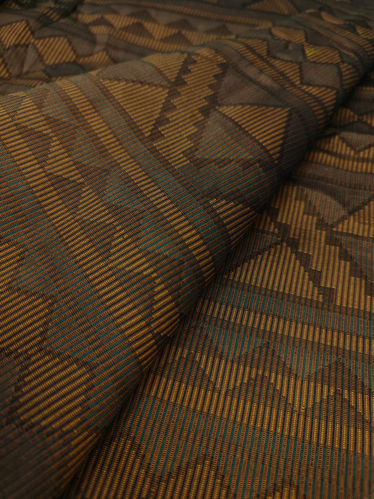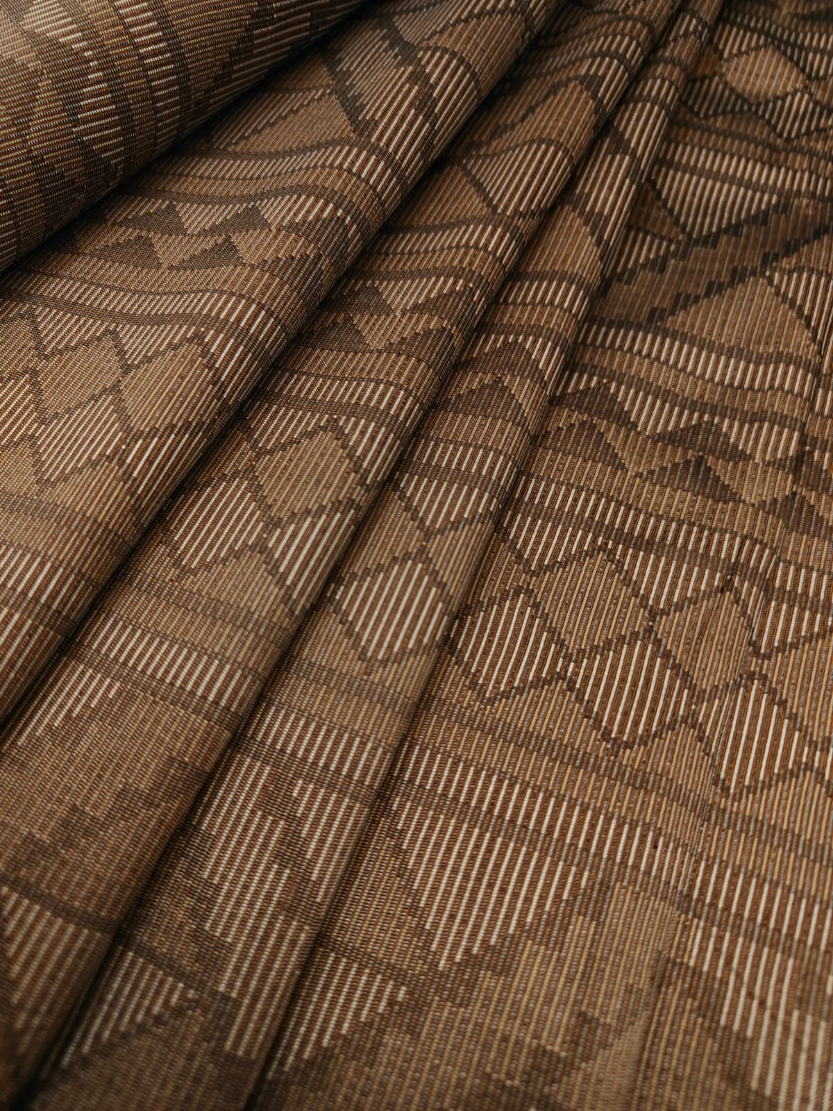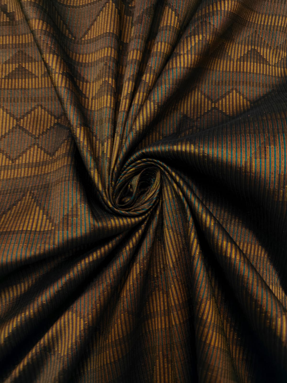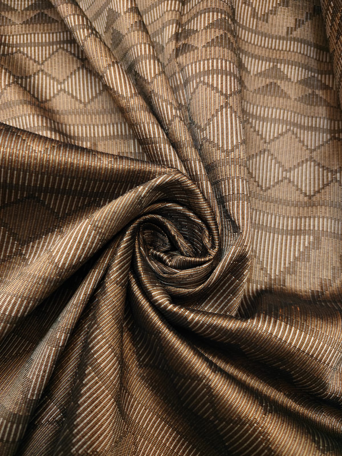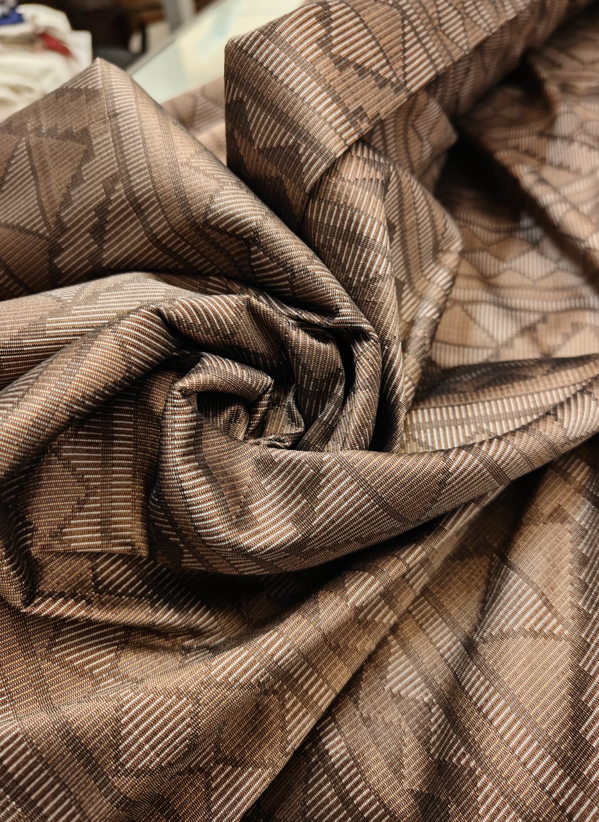 100% Silk Taffeta  triangles ribbed Jacquard Fabric available in 2 colors subtle pink/brown and mustard/green/brown [20299/300]