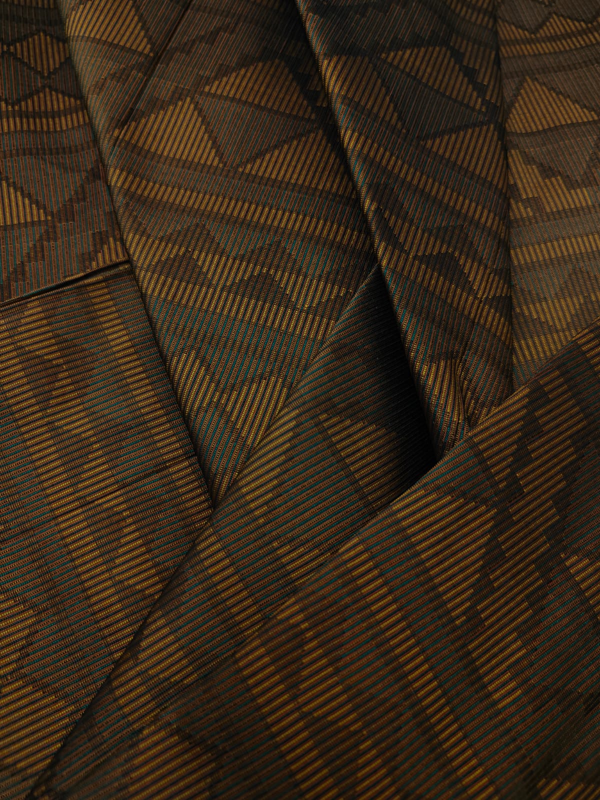 100% Silk Taffeta triangles ribbed Jacquard Fabric available in 2 colors subtle pink/brown and mustard/green/brown [20299/300]