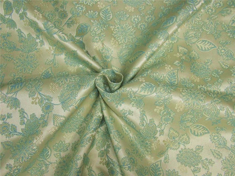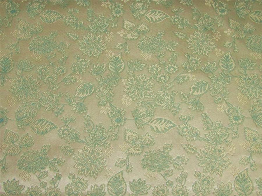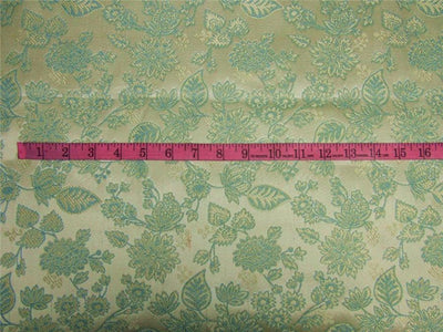 Brocade fabric Cream x sea blue with gold lurex color 54"wide