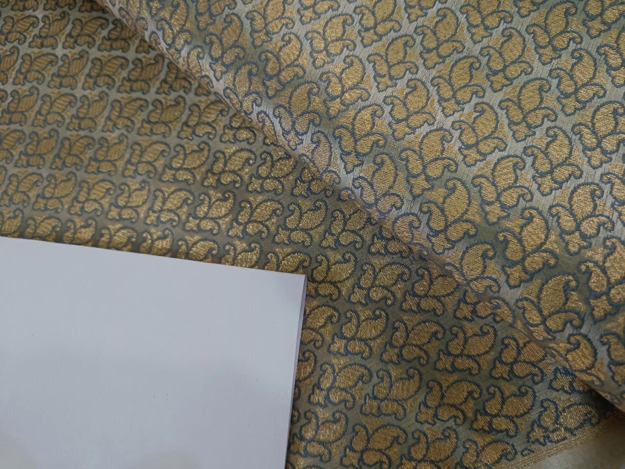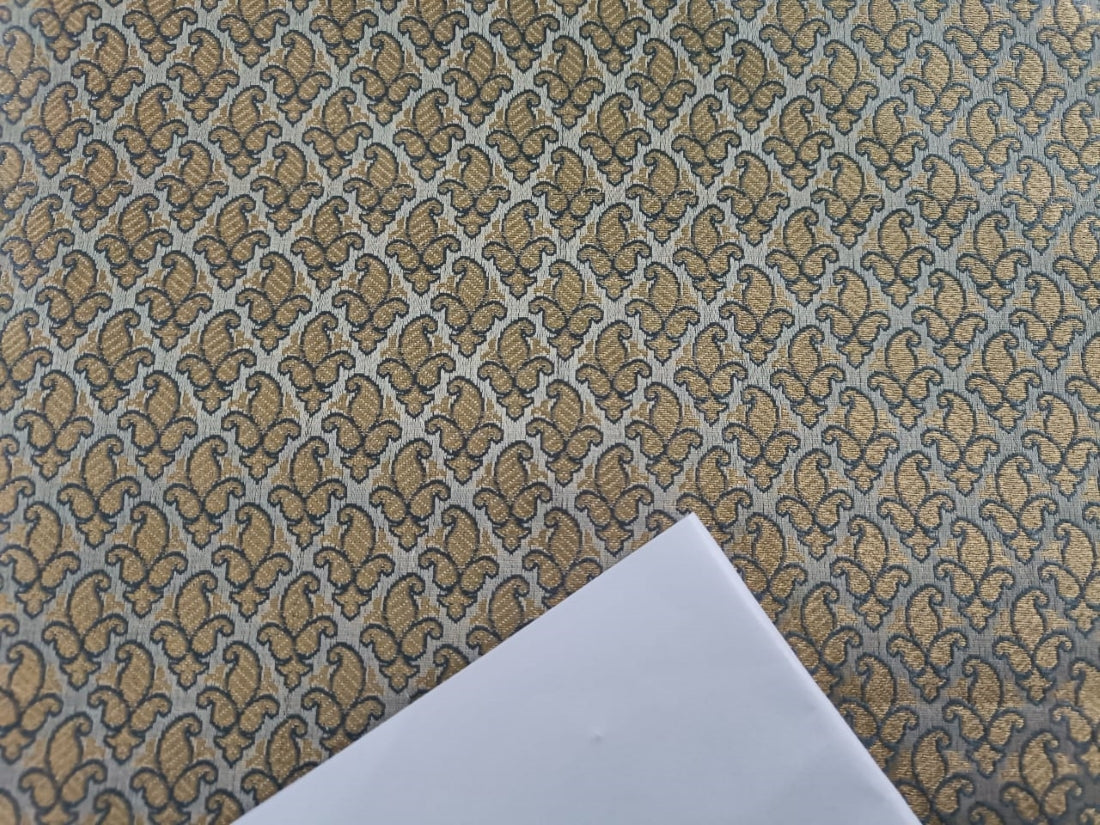 Brocade fabric silver grey with metallic gold jacquard 44" wide BRO820[5]