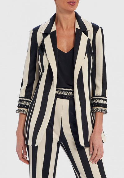 Cotton Silk Yarn Dyed stripe black and beige 54" wide