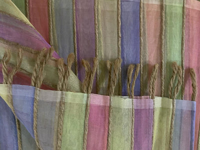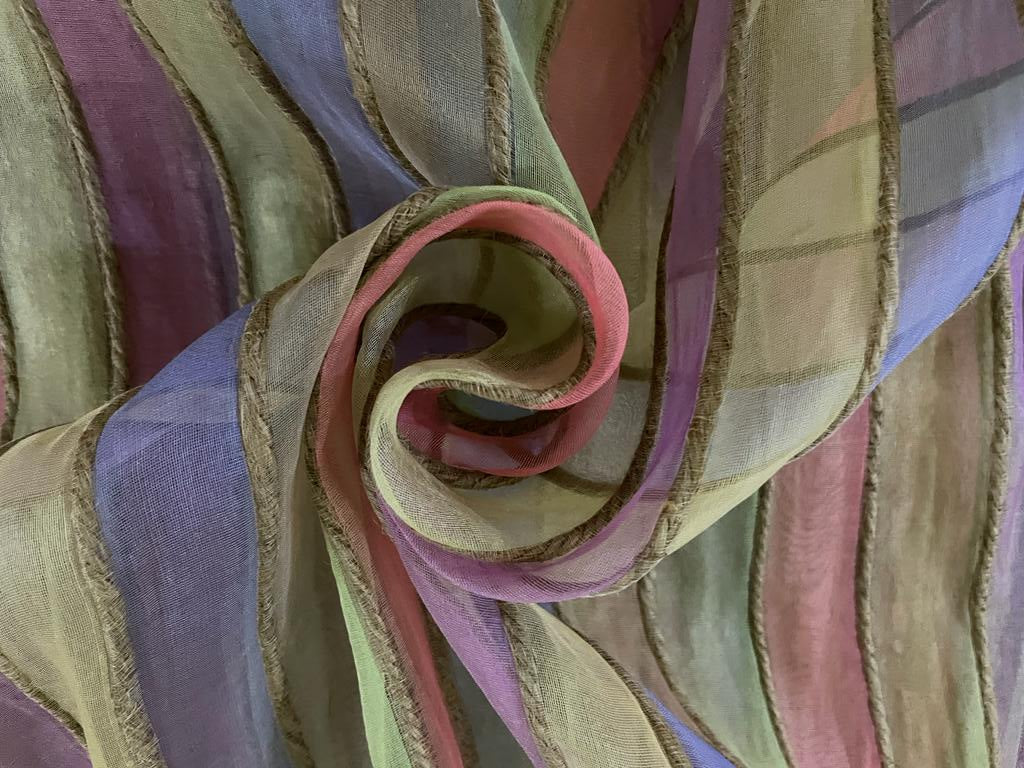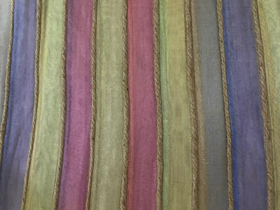 Organza silk fabric multi color stripe selvidge to selvidge vertical 44" wide with jute rope [9809]