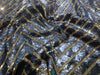 Sequin fabric is a type of fabric covered with plastic or metal shaped pieces. It is also commonly referred to as 'sequence fabric', though the only correct term is 'sequin'. Sequins vary in size, shape and color. This fabric is not stretchy and has an opaque backing.
