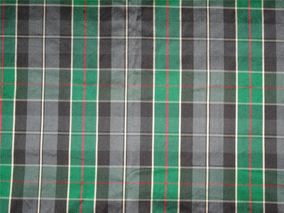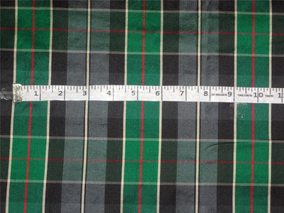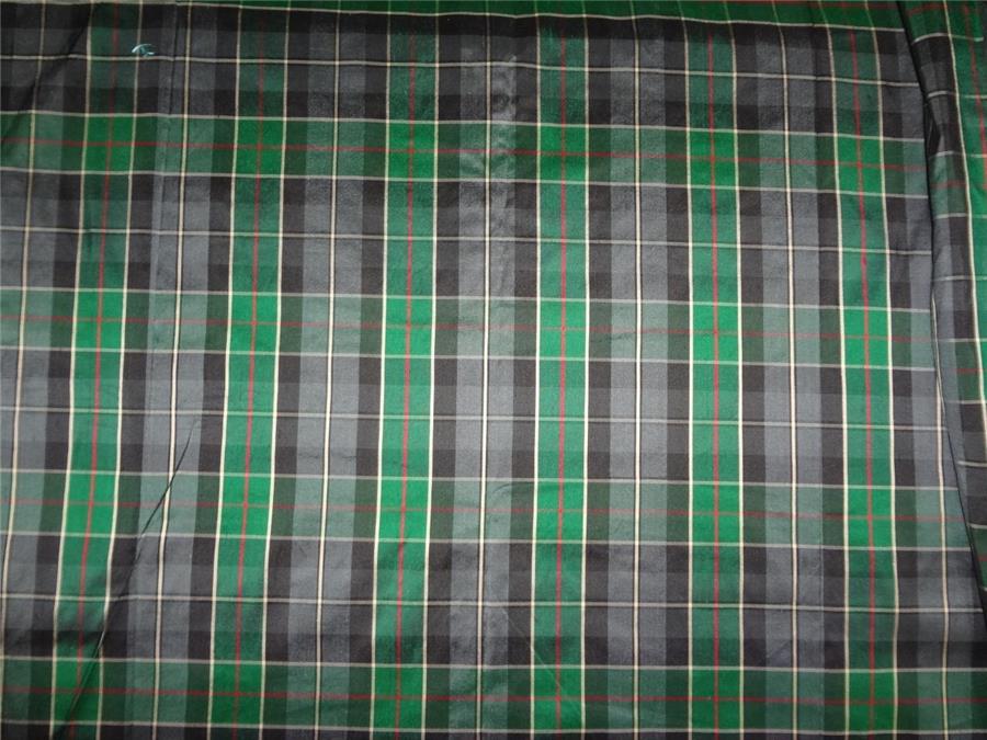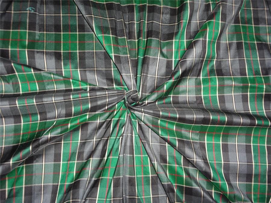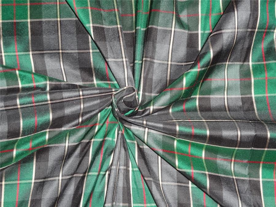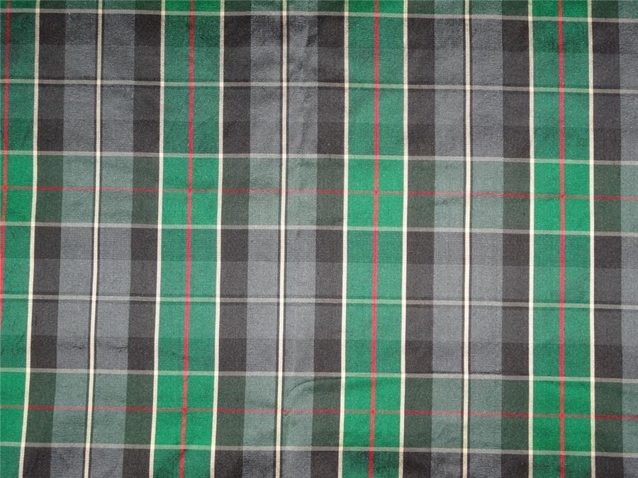 GREEN X MULTI COLOR PLAIDS~SILK DUPIONI FABRIC~WIDTH 54