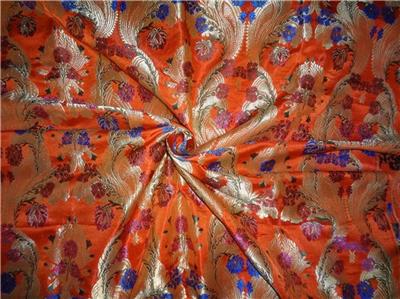 Heavy Silk Brocade bright orange metallic gold & royal blue/green color 44" wide BRO539[3]
