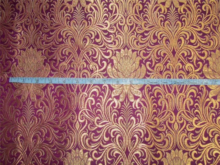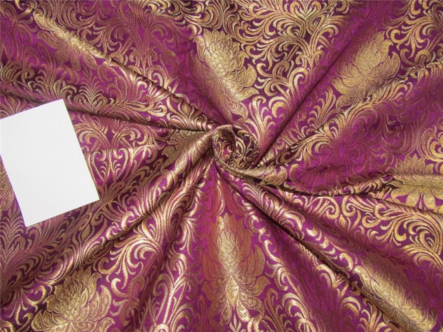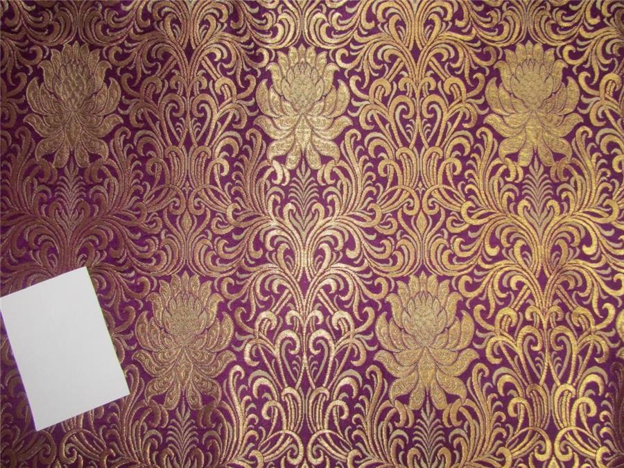 Heavy Silk Brocade Fabric Aubergine x Metallic Gold color 36"BRO614[2]
