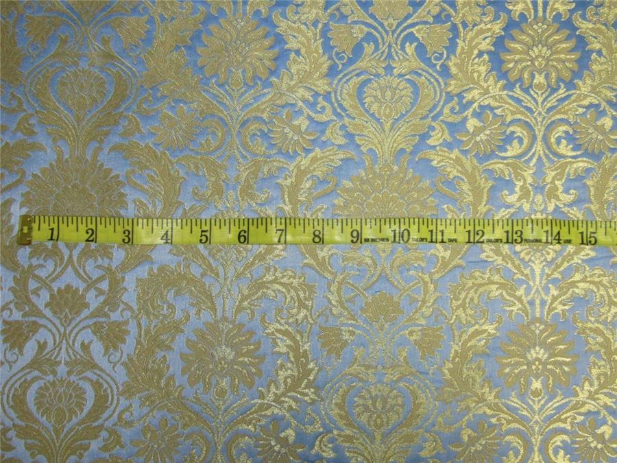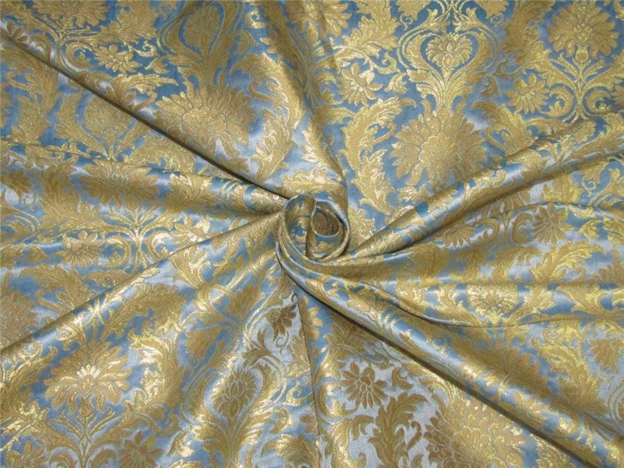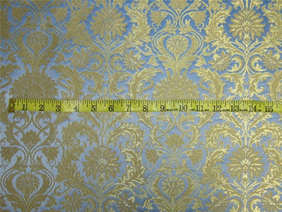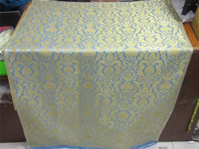 Heavy Silk Brocade Fabric blue x Metallic Gold color 36"
