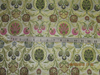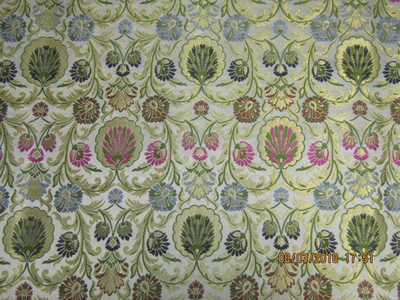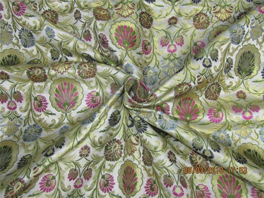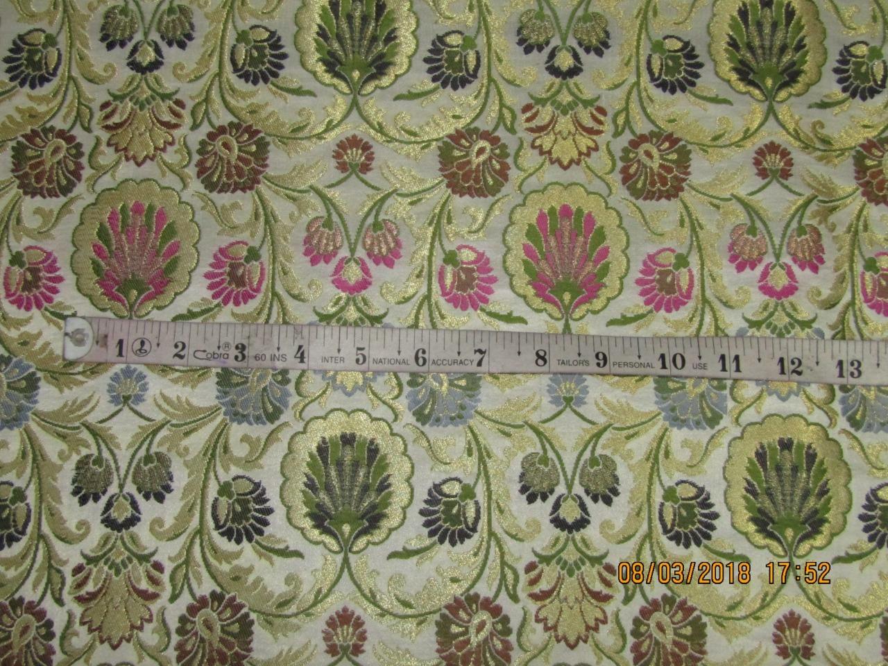 Silk Brocade Fabric ivory green navy blue x metallic gold color 36" wide BRO571[1]