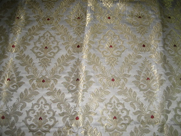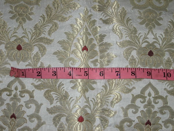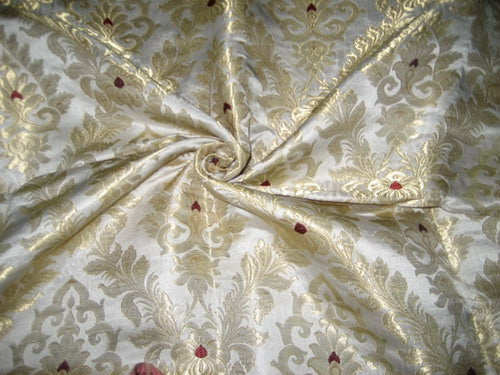 Heavy Silk Brocade Fabric Ivory,Wine & Metalic Gold BRO133[1]