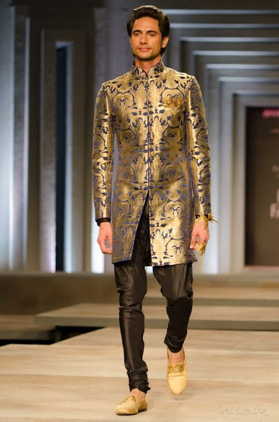 Kinkhwab brocade is essentially a heavy and gilt form of brocade. It is known for having extensive amounts of zari work which makes the underlying silk fabric invisible under the sheer amount of work done on the fabric. The zari work itself makes for more than fifty percent of the entire surface of the fabric. The word ?kinkhwab? translates into tiny dreams or little dreams which can be interpreted to mean that Kinkhwab is ?the fabric of dreams?. The sheer beauty of this fabric has made it popular as bridal wear.