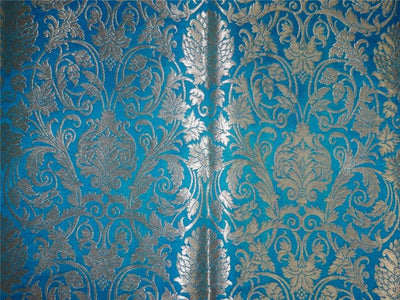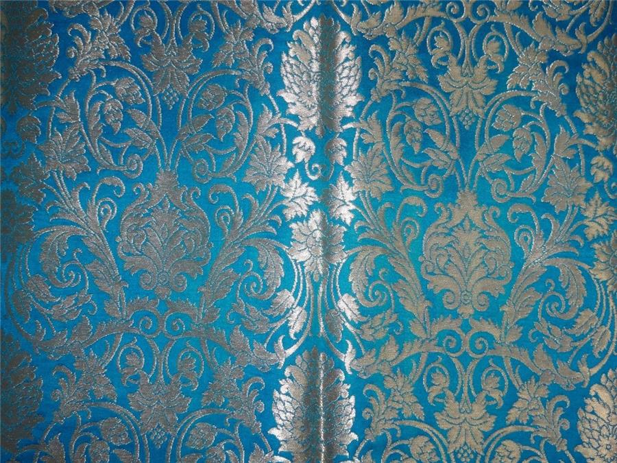 HEAVY SILK BROCADE FABRIC TURQUOISE BLUE X METALLIC GOLD COLOR 36" wide BRO491[3]