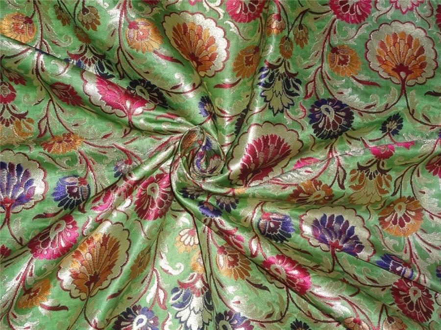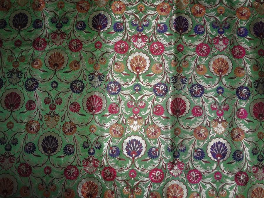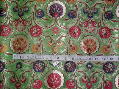 SILK BROCADE FABRIC GREEN METALLIC GOLD & MULTI COLOR BRO544[4]