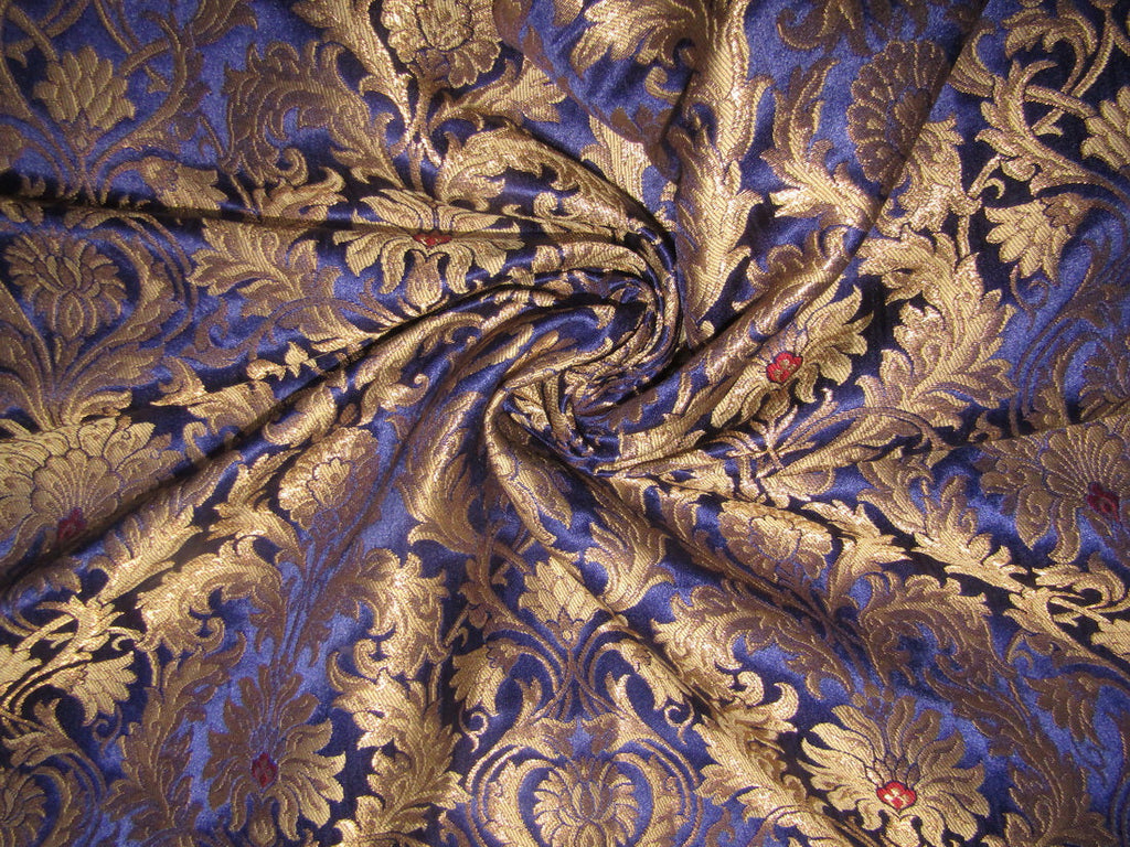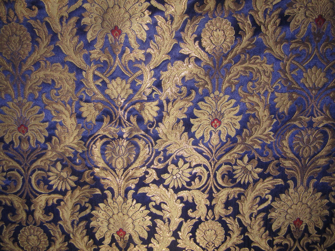 Silk Brocade KING KHAB fabric ink blue and metallic gold Color 36" wide BRO752[1]