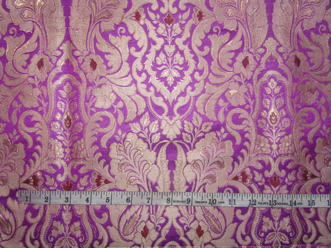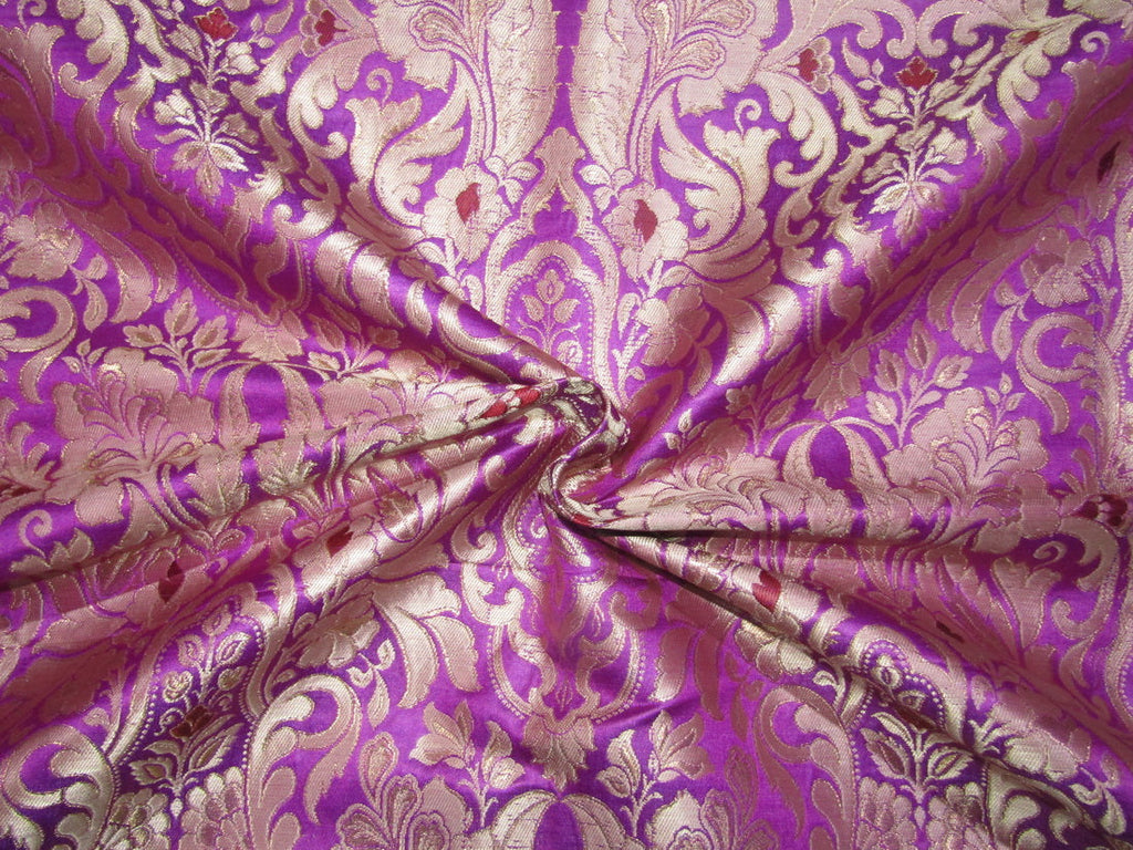 Silk Brocade KING KHAB fabric pinkish purple and metallic gold color 36" wide BRO754[4]