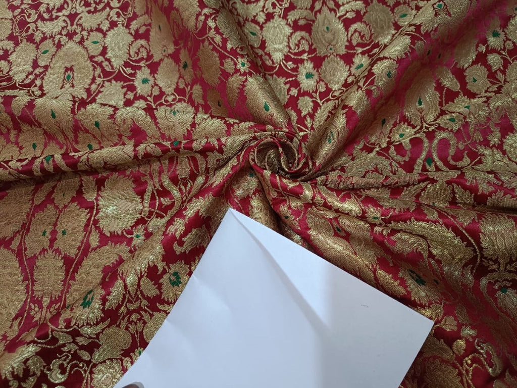 Heavy Silk Brocade KING KHAB fabric red and metallic gold BRO78[5]