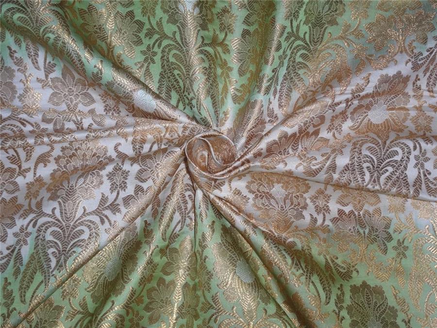 Silk brocade fabric shaded pastel green and ivory color 44" wide BRO545[4]