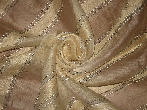 IVORY SILK ORGANZA FABRIC 44" ROPE STRIPES [8270]