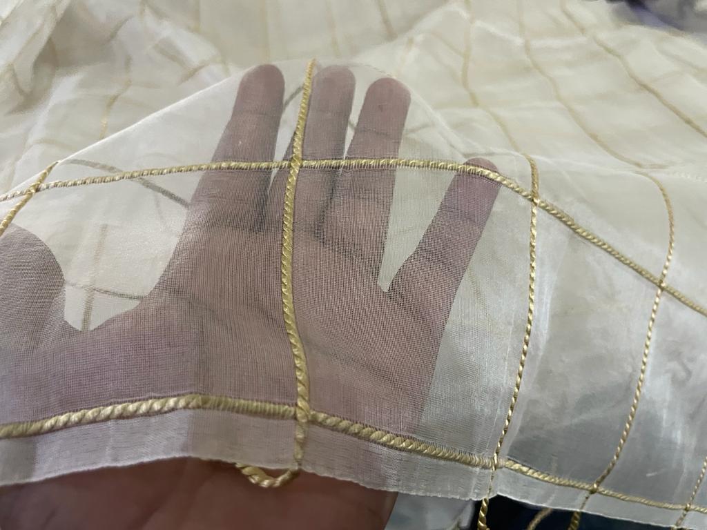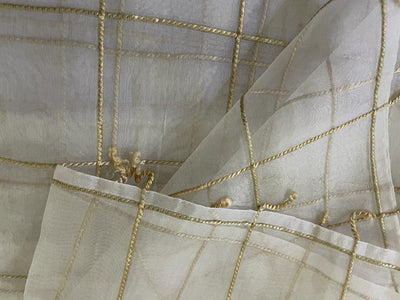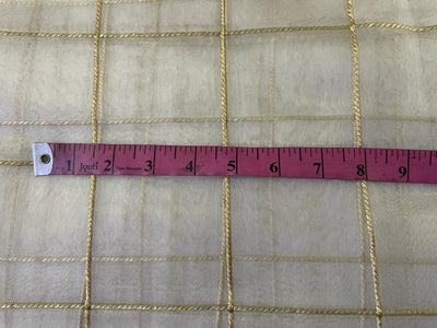 Silk organza fabric 44" wide ivory with gold rope plaids~ Semi Sheer [3199]