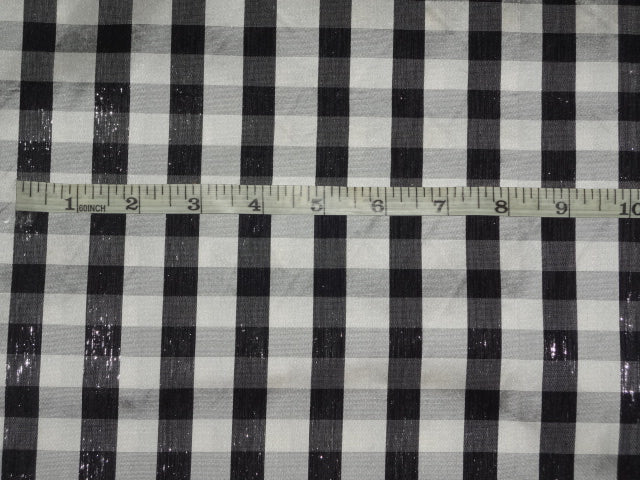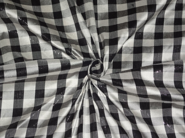 Ivory,Grey & Black COLOUR PLAIDS~SILK DUPIONI FABRIC~WIDTH 54 DUP C74[1]