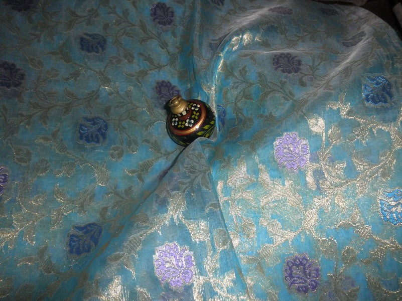 Jacquard silk Organza fabric Metallic Rich blue