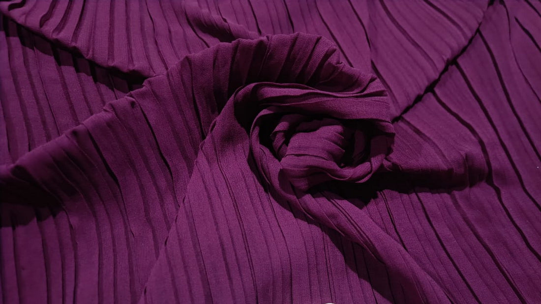 Polyester fabrics provide an enduring pleat, whilst silk satin, organza, Georgette and taffeta fabrics make gorgeous pleated pieces - do note some silk qualities can lose some of their pleating hold when dry-cleaned.