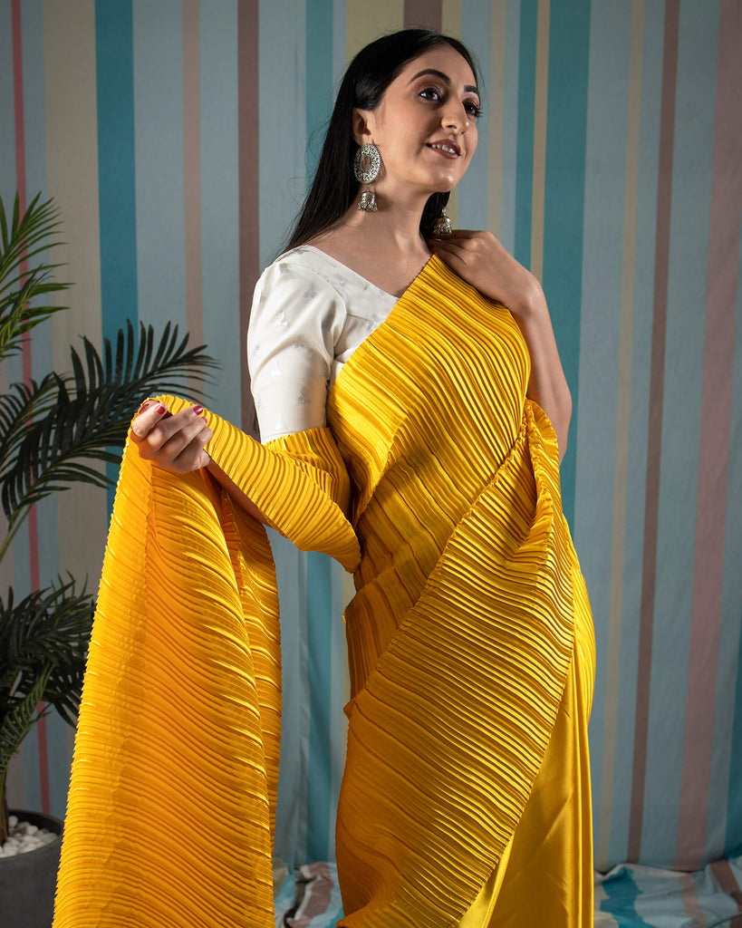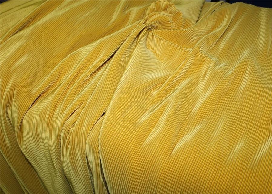 Polyester fabrics provide an enduring pleat, whilst silk satin, organza, Georgette and taffeta fabrics make gorgeous pleated pieces - do note some silk qualities can lose some of their pleating hold when dry-cleaned.