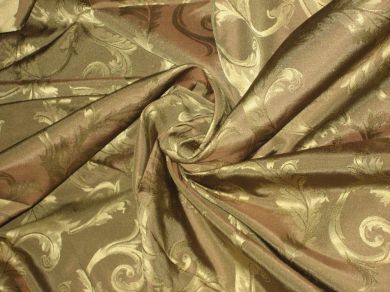 SILK TAFFETA POLYESTER FABRIC 54"Khaki colour with gold jacquard design
