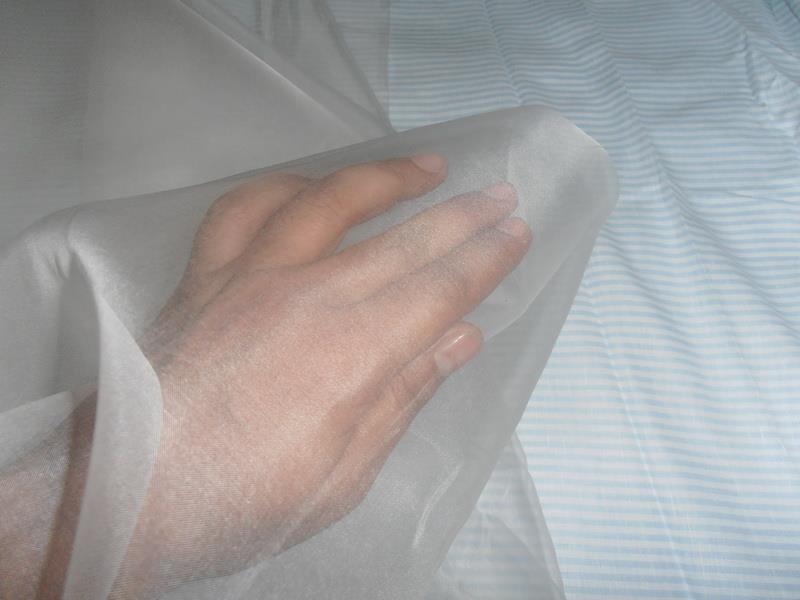 A very sheer, crisp fabric that is strong and durable with a firm hand and a flat, smooth texture. The open weave is naturally stiff without the addition of any "stiffeners", so great for specific use in wedding garments, petticoats, costuming, lampshade work, interfacing, etc. Readily accepts and reflects strong, brilliant colors.