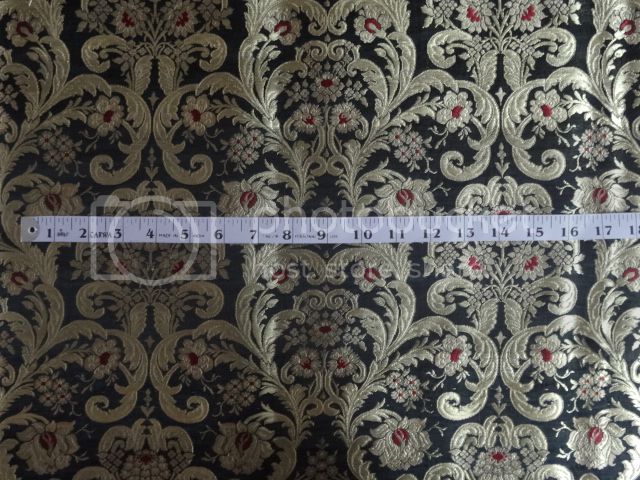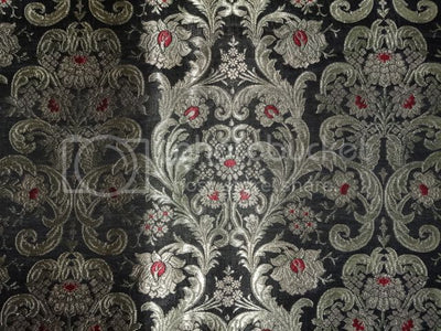 Pure Heavy Silk Brocade Fabric Black,Red,Gold & Metallic Gold color