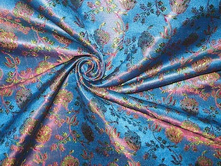 Pure Silk Brocade Fabric Blue,Pink & Green color 44"