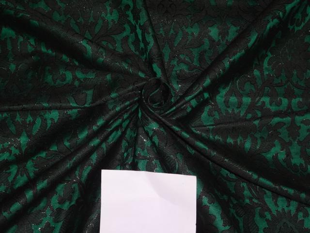 PURE SILK BROCADE FABRIC DARK GREEN WITH BLACK