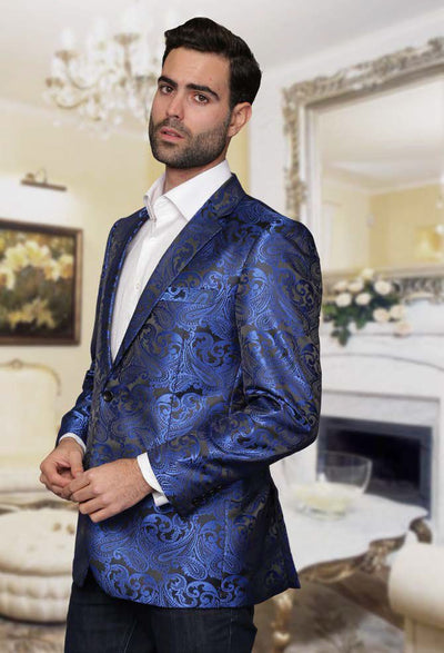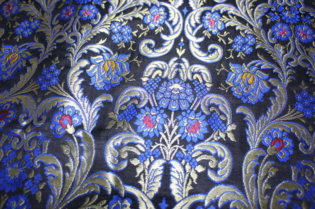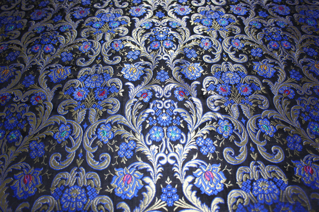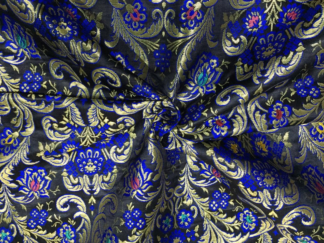 Silk Brocade fabric black royal blue x metallic gold color 36" wide BRO717[1]