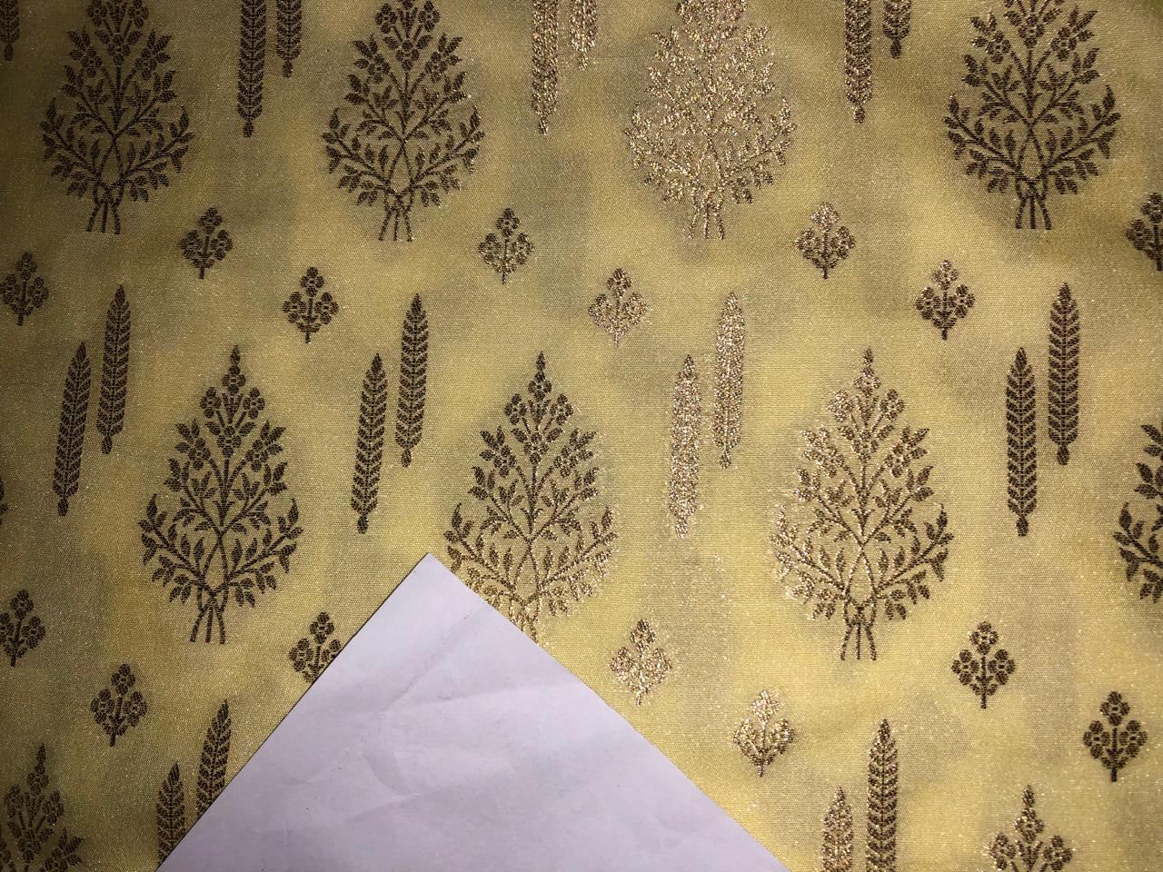 Silk Brocade fabric 44" wide available in 4 COLORS LEMON YELLOW DARK SALMON OLIVE AND  DARK BEIGE BRO908
