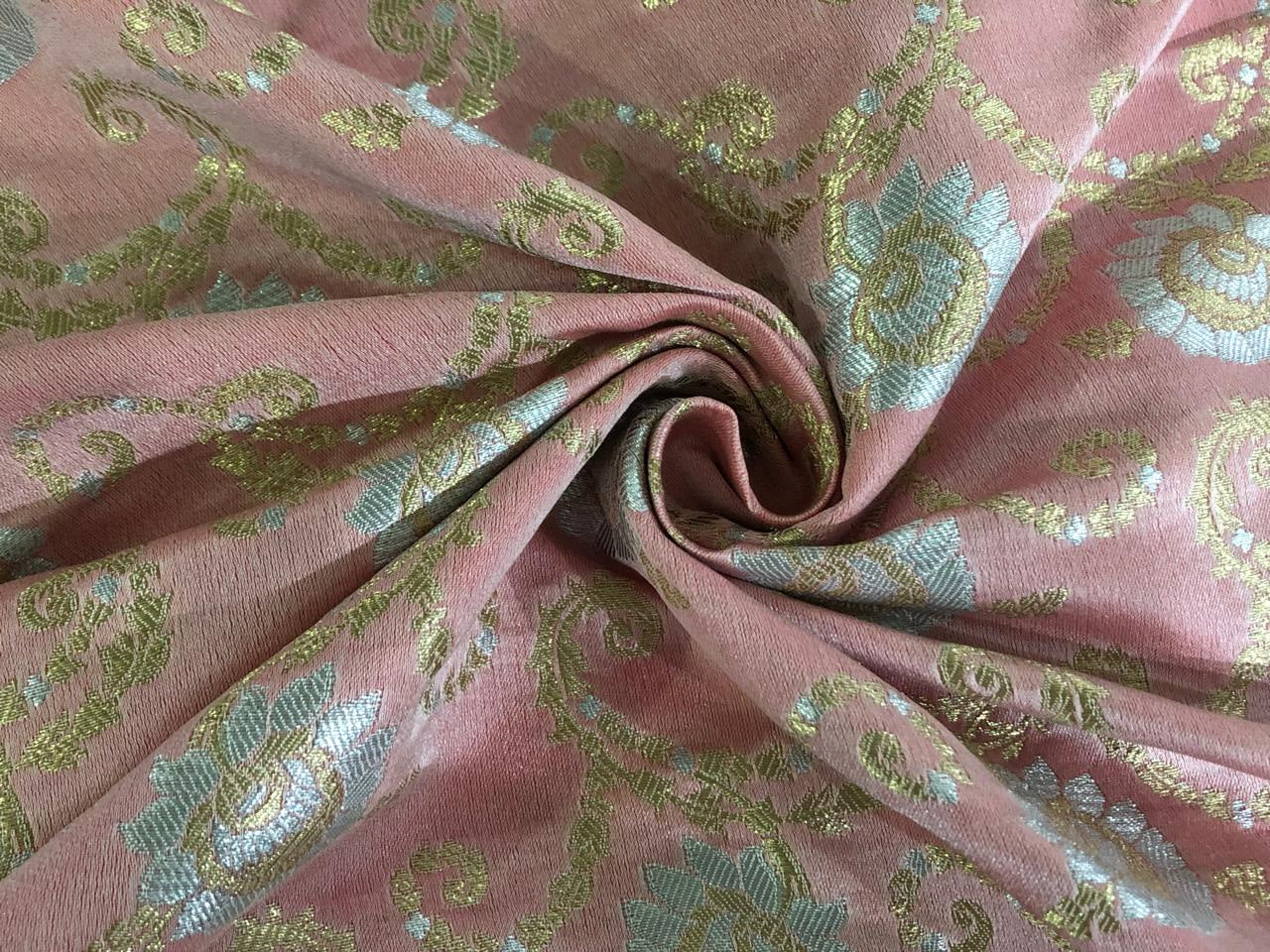 Silk Brocade fabric with metallic gold and silver floral jacquard 44" wide available in 2 colors mauve and pink salmon BRO981