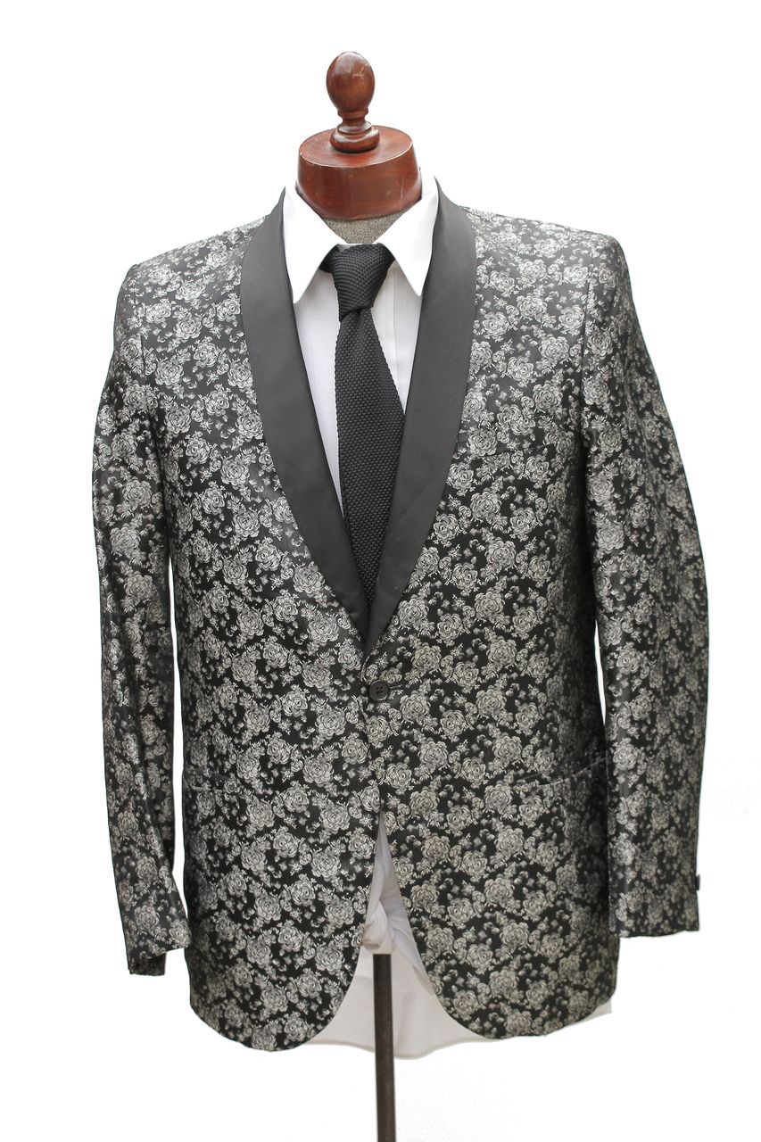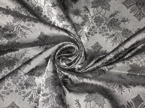 SILK BROCADE FABRIC Black & Grey color 44" wide Vestment design BRO155[4]