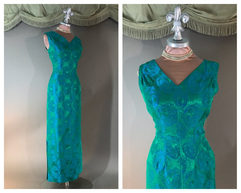 SILK BROCADE FABRIC POWDER Blue and Green 44" wide BRO150[2]